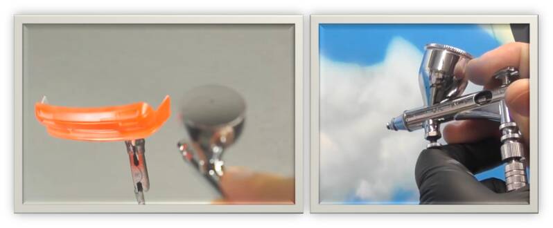 Het haperen tijdens het spuiten wordt nagenoeg altijd veroorzaakt door een vieze airbrush en dus niet zo zeer door de verf. Druppelvorming voorkom je door een goed droog, schoon en vetvrij onderdeel te hebben.