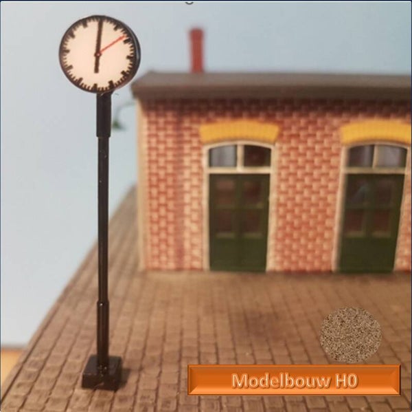 Staande klok Stationsklok wijzerplaten tweezijdig verlicht, 6 cm hoog H0 modelbouw,Geleverd met weerstand voor 12-15 volt voedingWerkt op AC en DCOpgenomen vermogen 20mA