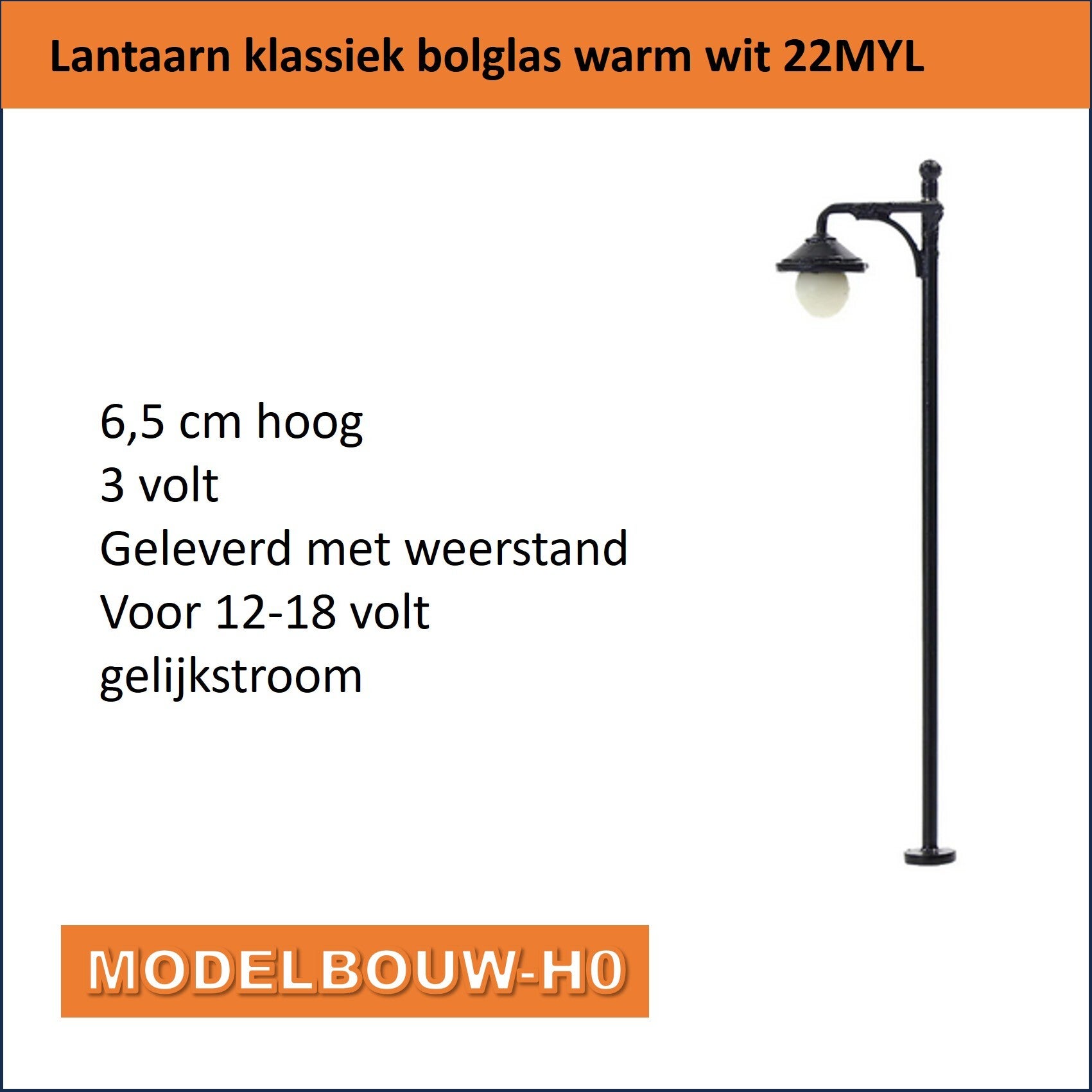 Klassieke bolglas lantaarn 6,5 cm hoog geschikt voor voor HOstraalt warmwit led licht