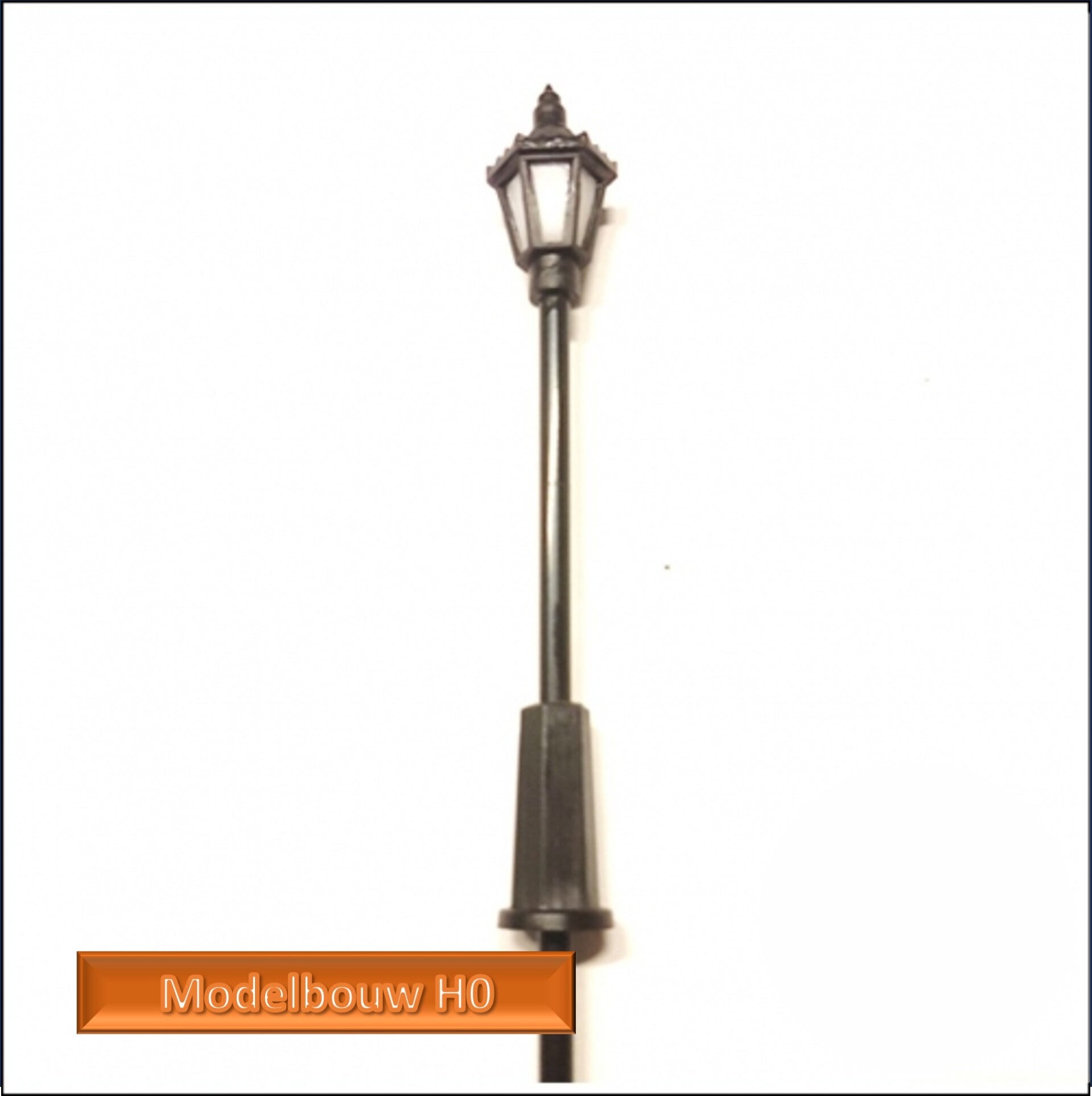 Straatlantaarn van PVC met warmwitte led lamp de hoogte is verschuifbaar vanaf 11 cm, maar 7 cm hoog is voor HO prima werkelijk hoogte is dan ca 6 meter hoog.Ze worden per 5 stuks geleverd.