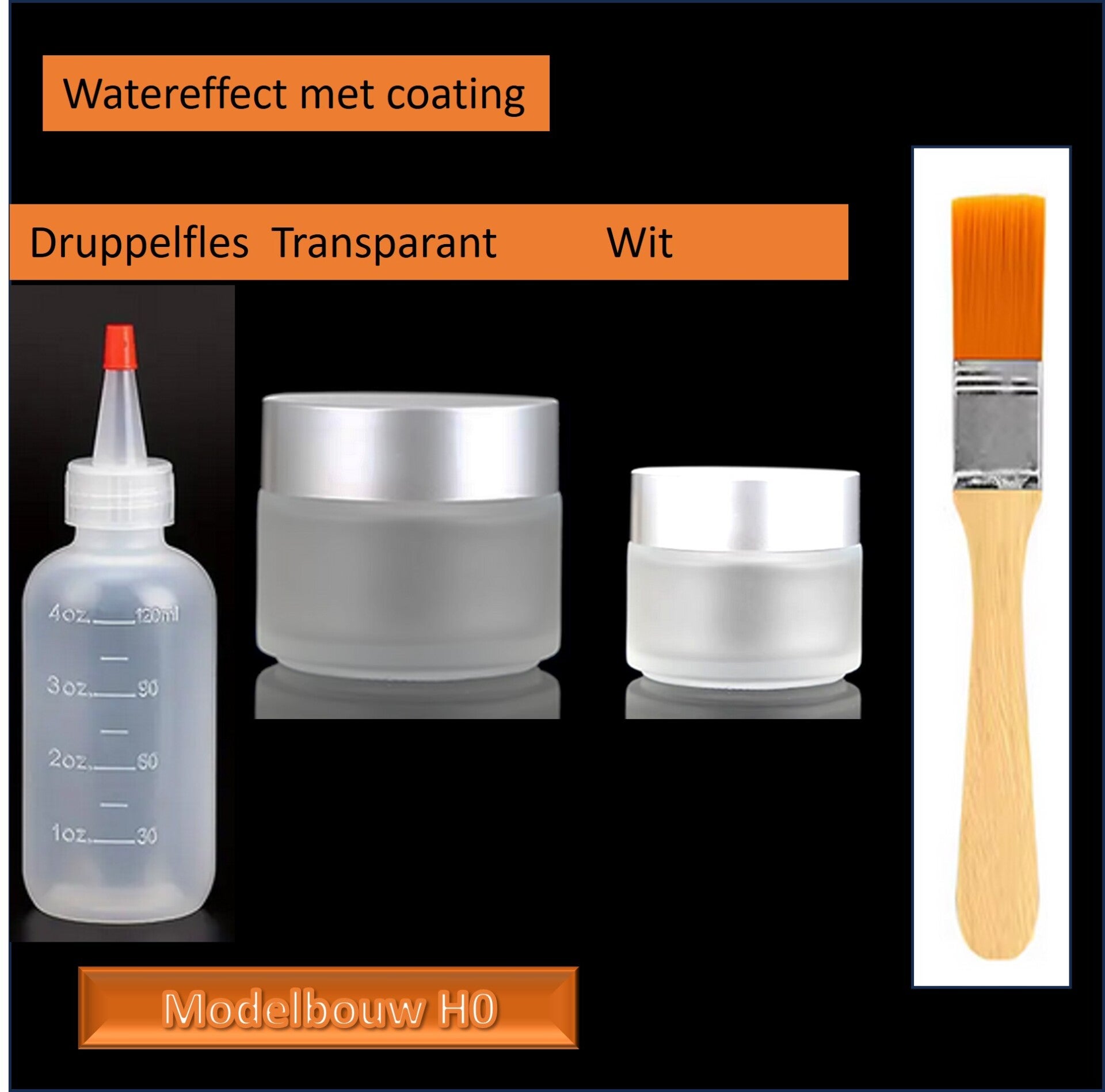 De ondergrond maak je in een gewenste kleur, denk daarbij aan het echte, wat je na wil maken, dus verf dat in de kleur zoals de werkelijkheid is, een sloot bijvoorbeeld is in het midden donkerder dan aan de zijkanten. Nu giet je eerst het transparante gel in de sloot, dat kan in het meegeleverde flesje. Hierna kun je ook riet, stenen een drinkend dier enz toevoegen in de gel. Na 1 uur kun je ook de witte gel in het flesje uitgieten, en met de meegeleverde kwast moduleren zoals je dat wil. Daarna volgt een droog periode van 3 uren, helemaal hard is het na 6 uren.