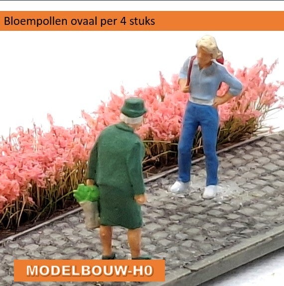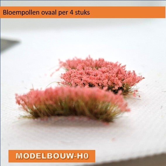 Deze pollen zijn fraai voorzien van bloemen, natuurlijk kun je er een aantal uithalen als je ze teveel vind. Gebruik de bloemetjes opnieuw als strooisel. ze zijn 8mm hoog, maar kunnen nog een stukje afgeknipt worden zodat ze lager zijn. Verder is het handig als je ze langs een huis, muur of hek plaatst ze doormidde te knippen en sluiten ze beter aan bij de muur, overigens heb je er dan twee om dit te herhalen.