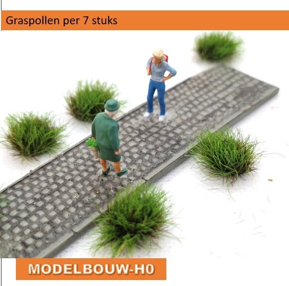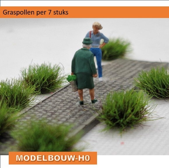 Graspollen zijn altijd nodig op de treinbaan, ze zijn een welkome synery voor langs het spoor, bij huizen, de weg of industrieterren.
