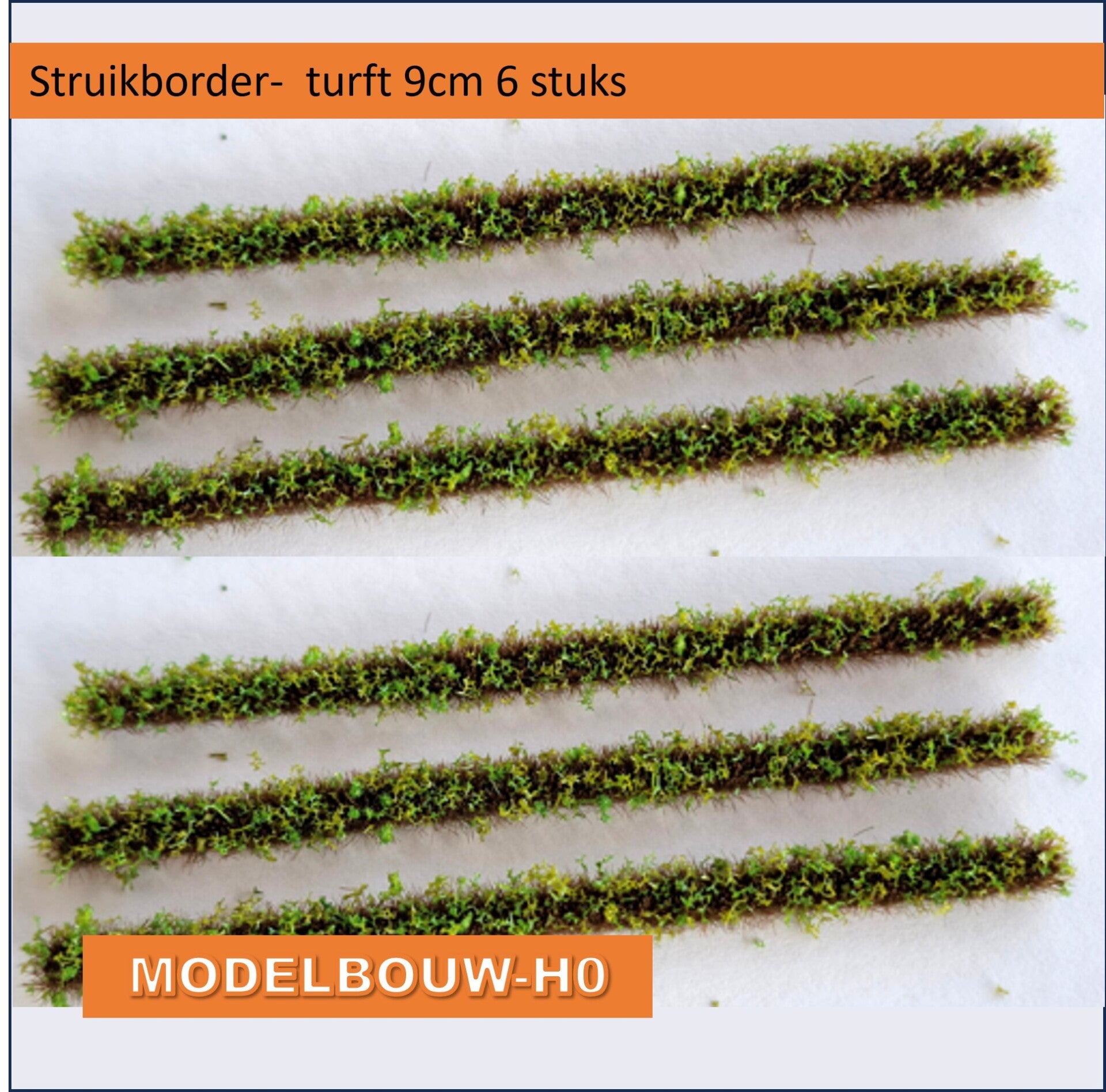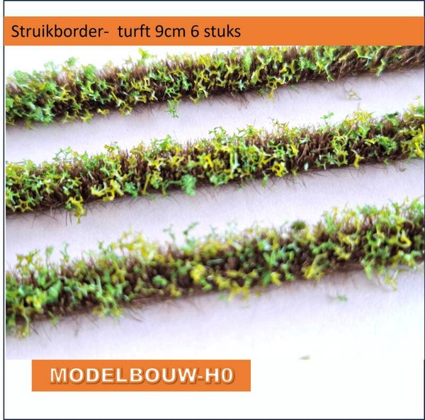 Grasborder turft midden groen 9cm lang 3mm hoog 4 mm breed de set bestaat uit 6 stroken.
