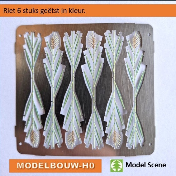 Dit pakketje bestaat uit 6 stuks in kleur geëtst rietplanen.