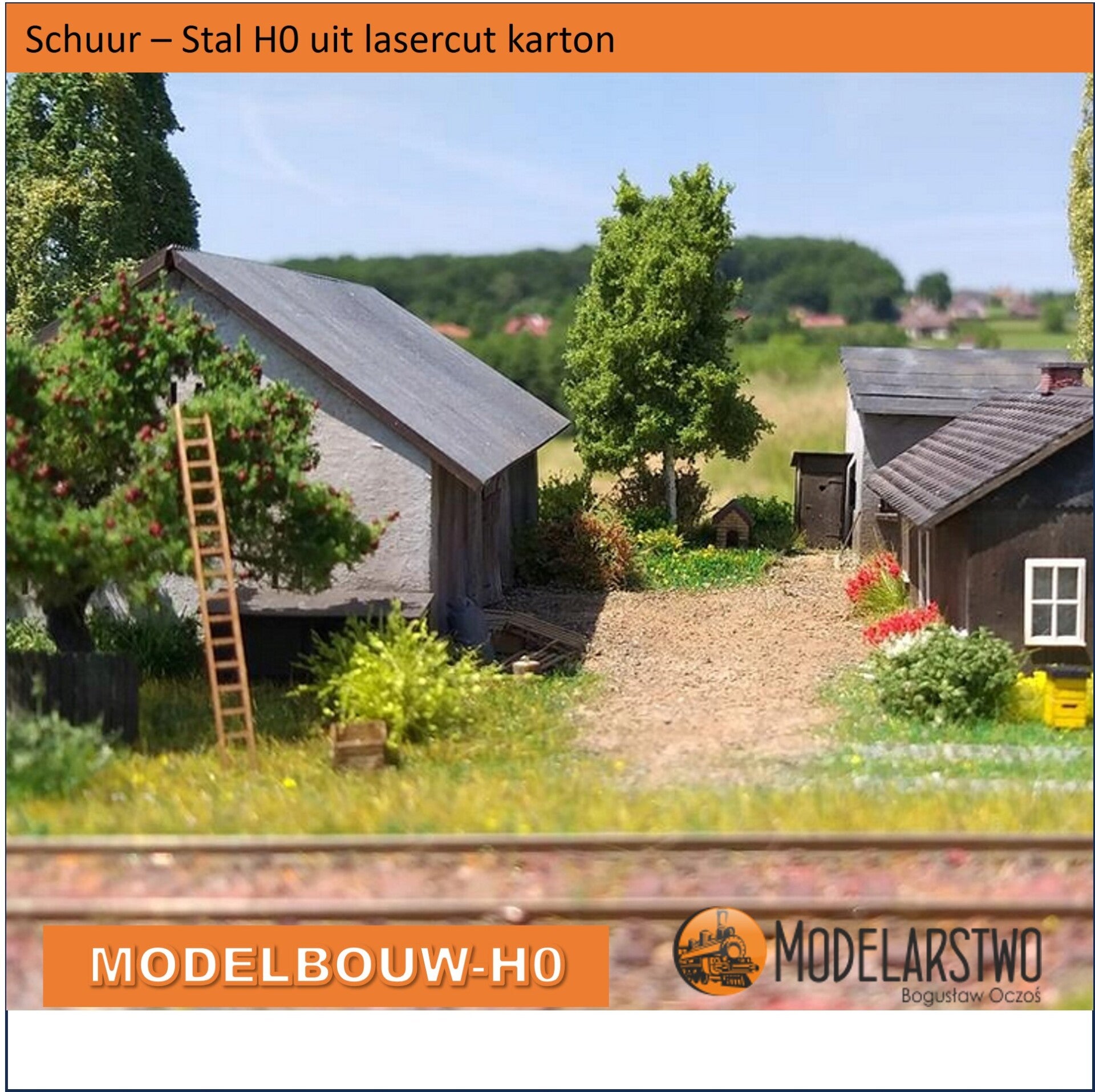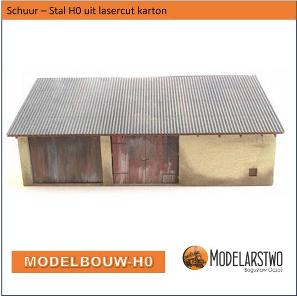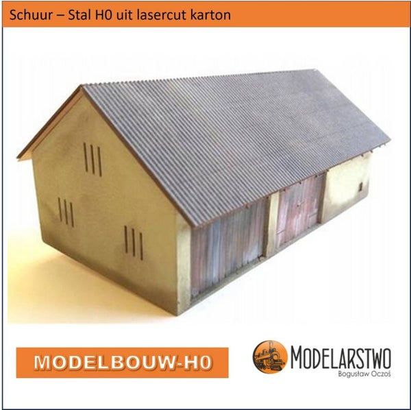 Deze stal en of schuur is welkom bij elk dorp en of boerderij, wordt geleverd met veel details. Voor H0 en is in laser cut uit karton gemaakt, het inelkaar zetten is zeker niet ingewikkeld, natuurlijk brengt uw eigen inbreng en geduld een mooi resultaat. Op één van de afbeeldingen staat de schuur geheel in eigen inbreng.