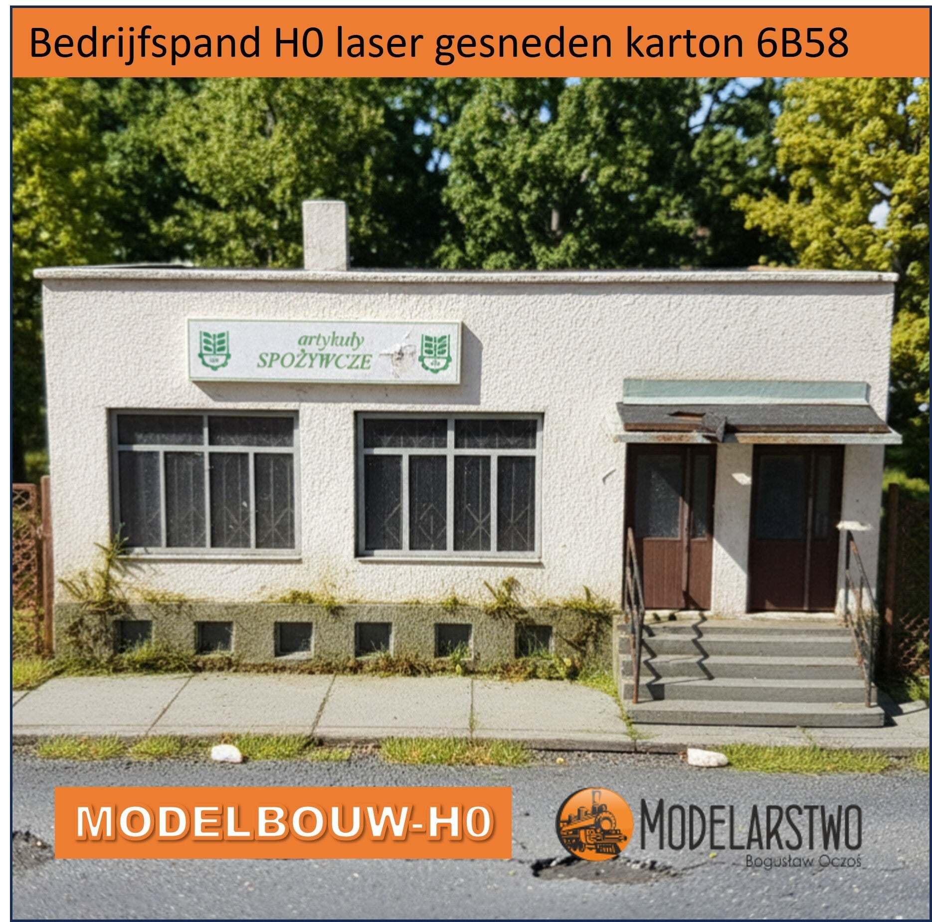Het bedrijfspand, wordt geleverd met veel details. Voor H0 en is uit laser gesneden karton gemaakt, het inelkaar zetten is zeker niet ingewikkeld, natuurlijk brengt uw eigen inbreng en geduld een mooi resultaat. Op één van de afbeeldingen staat het pand met geheel in eigen inbreng.