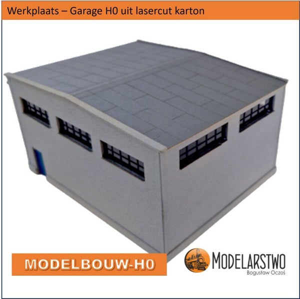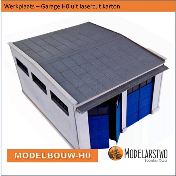 Een treinbaan zonder Garage is ondenkbaar, wordt geleverd met veel details. Voor H0 en is in laser cut uit karton gemaakt, het inelkaar zetten is zeker niet ingewikkeld, natuurlijk brengt uw eigen inbreng en geduld een mooi resultaat. Op één van de afbeeldingen staat het pand met geheel in eigen inbreng.