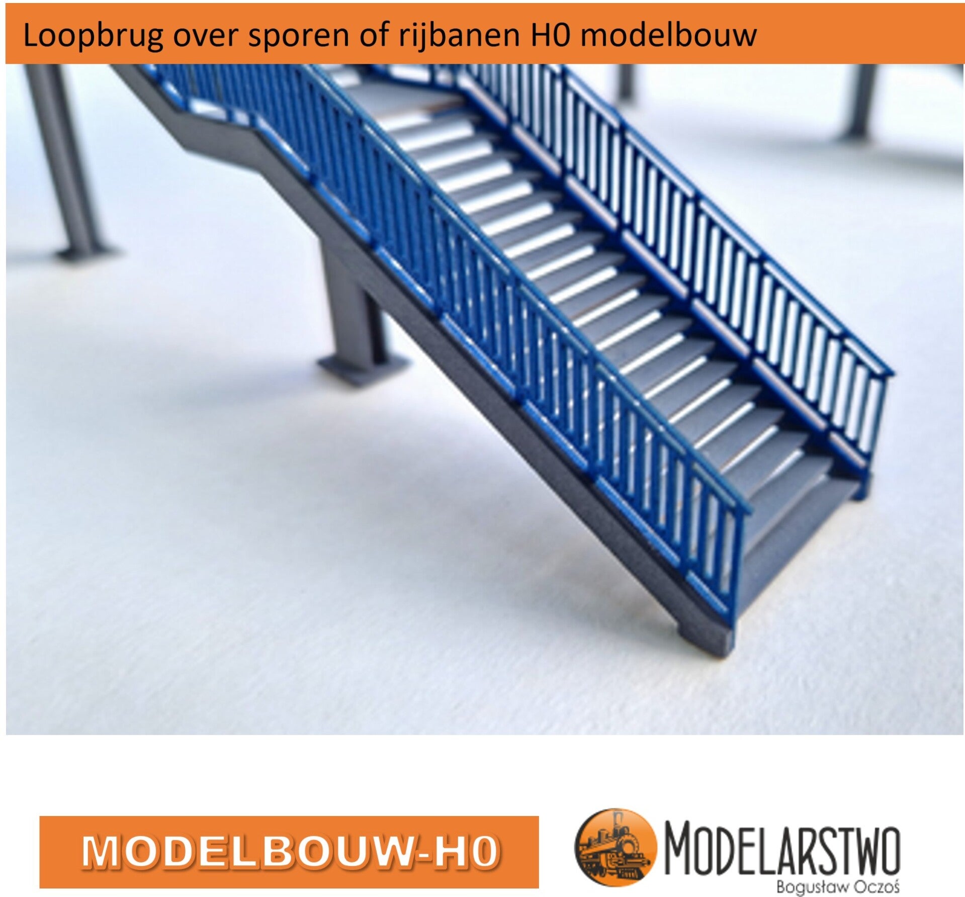 Deze loopbrug kun je natuurlijk over de spoorbanen laten gaan maar ook over rijbanen, het is dus een mooie aanwinst in de bouwpakketten, met dit bouwpakket is de basis gelegd met veel details. Geschikt voor H0 en is in laser cut uit karton gemaakt, het in elkaar zetten is zeker niet ingewikkeld, maar ervaring is wel een pré, natuurlijk brengt uw eigen inbreng en geduld een mooi resultaat.