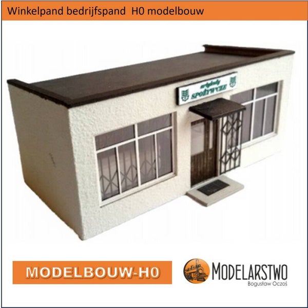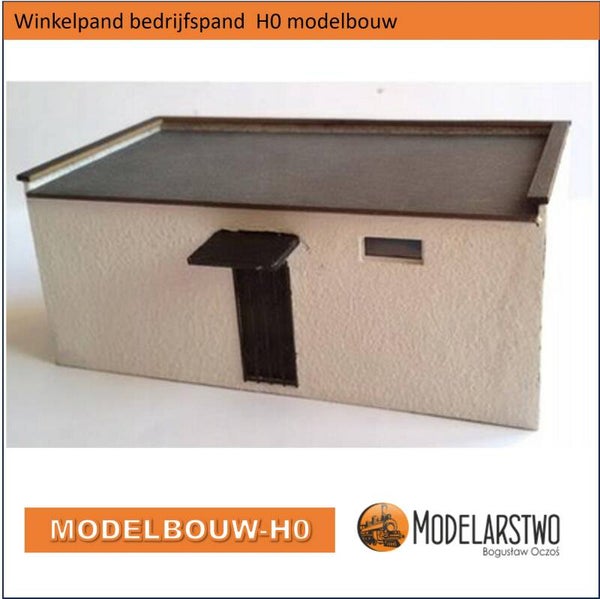Winkelpand of bedrijfspand. Een uniek model als bouwdoos en wordt geleverd met veel details. Voor H0 en is in laser cut uit karton gemaakt, het in elkaar zetten is zeker niet ingewikkeld, natuurlijk brengt uw eigen inbreng en geduld een mooi resultaat.