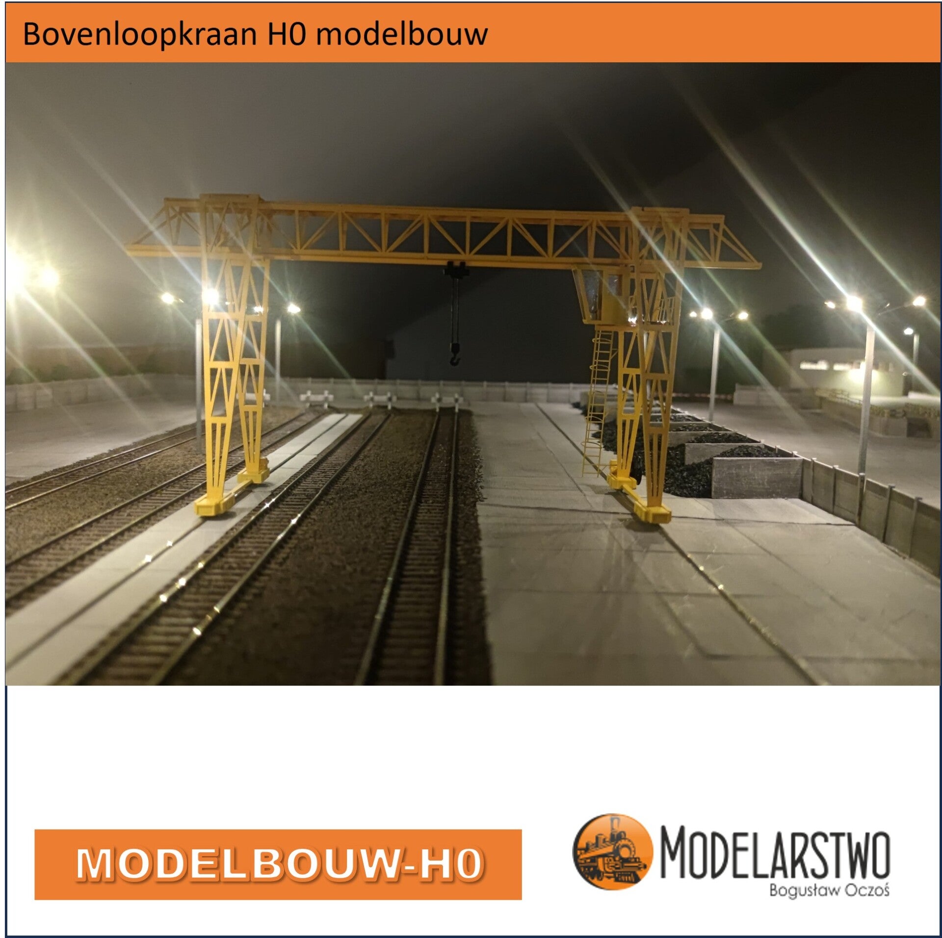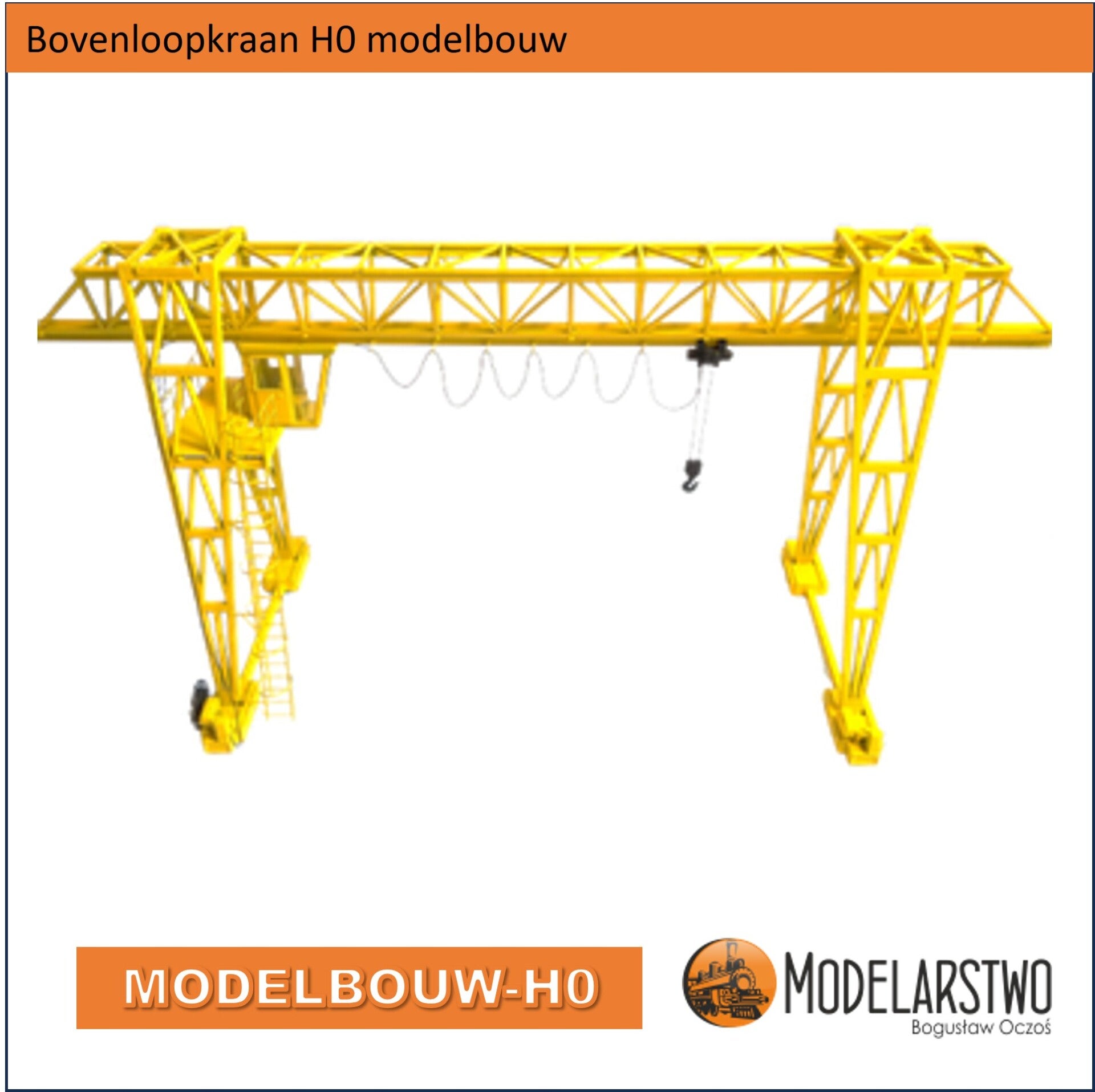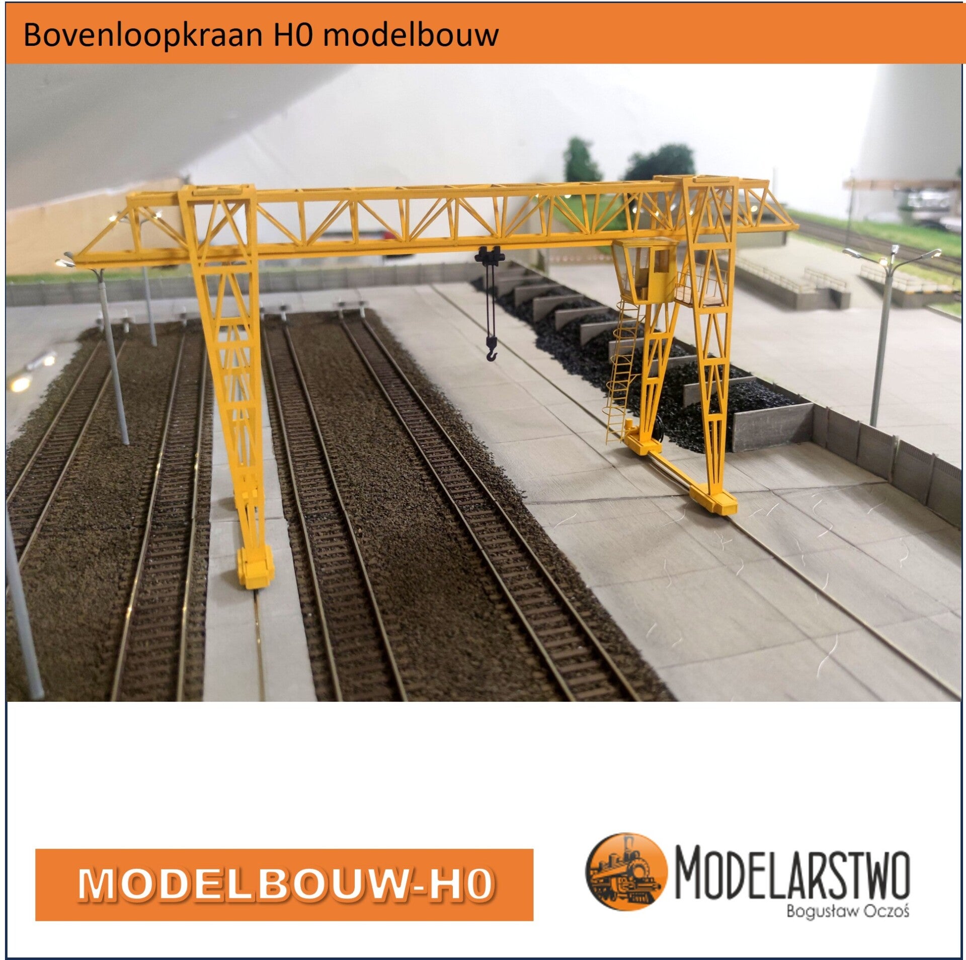 Een geweldige bouwdoos deze bovenloopkraan, gemaakt van hars, multiplex, spaanplaat, ABS-profiel en messing staaf gemaakt, het in elkaar zetten is zeker niet ingewikkeld. Met wat geduld en eigen inbreng maakt u een schitterende Bovenloopkraan voor uw treinbaan.