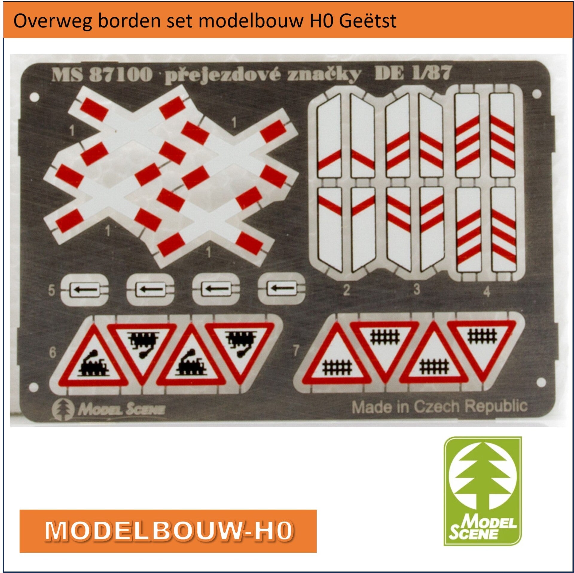 Spoorwegovergang borden set Modelbouw H0 Geëtst 87100