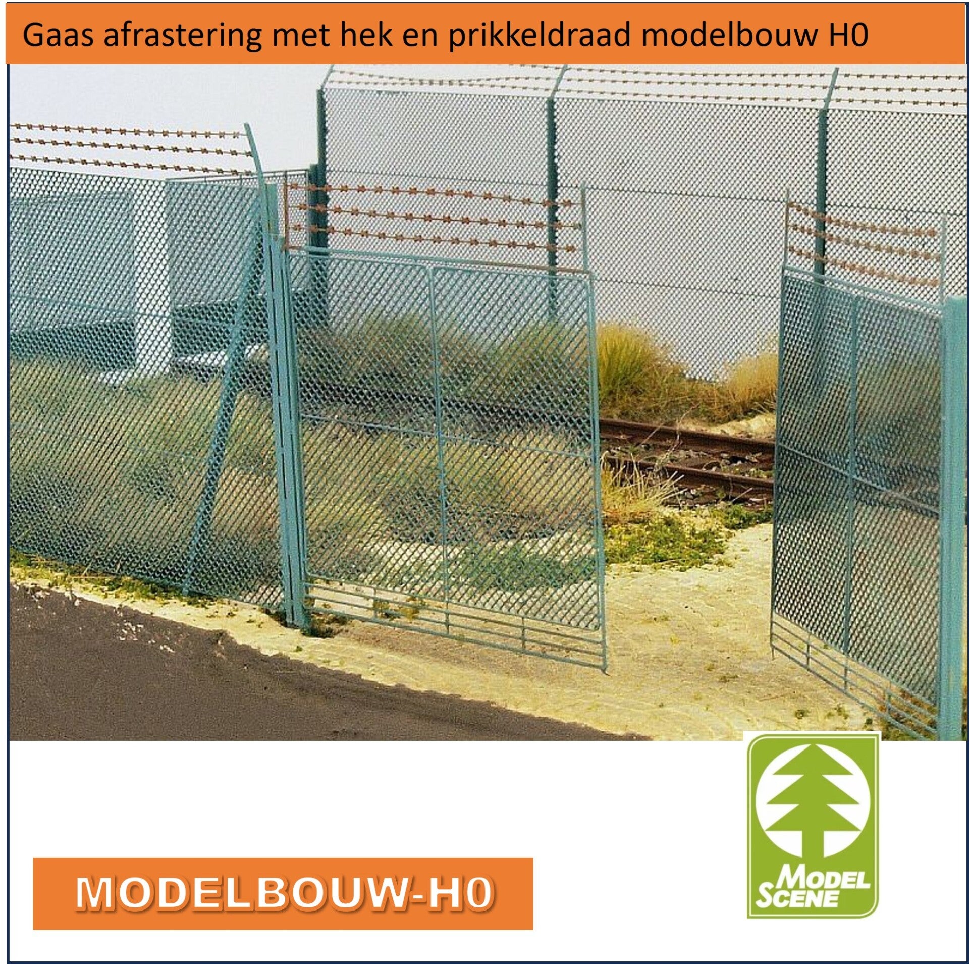 Gaas afrastering met hek en prikkeldraad modelbouw H0 48141