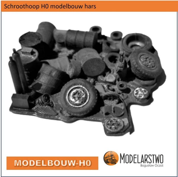 Bij ModelbouwH0 hebben ze er een mooie schroothoop van hars gemaakt. Met wat geduld en eigen inbreng maakt u een schitterende aanvulling op uw treinbaan. Een leuk klusje.