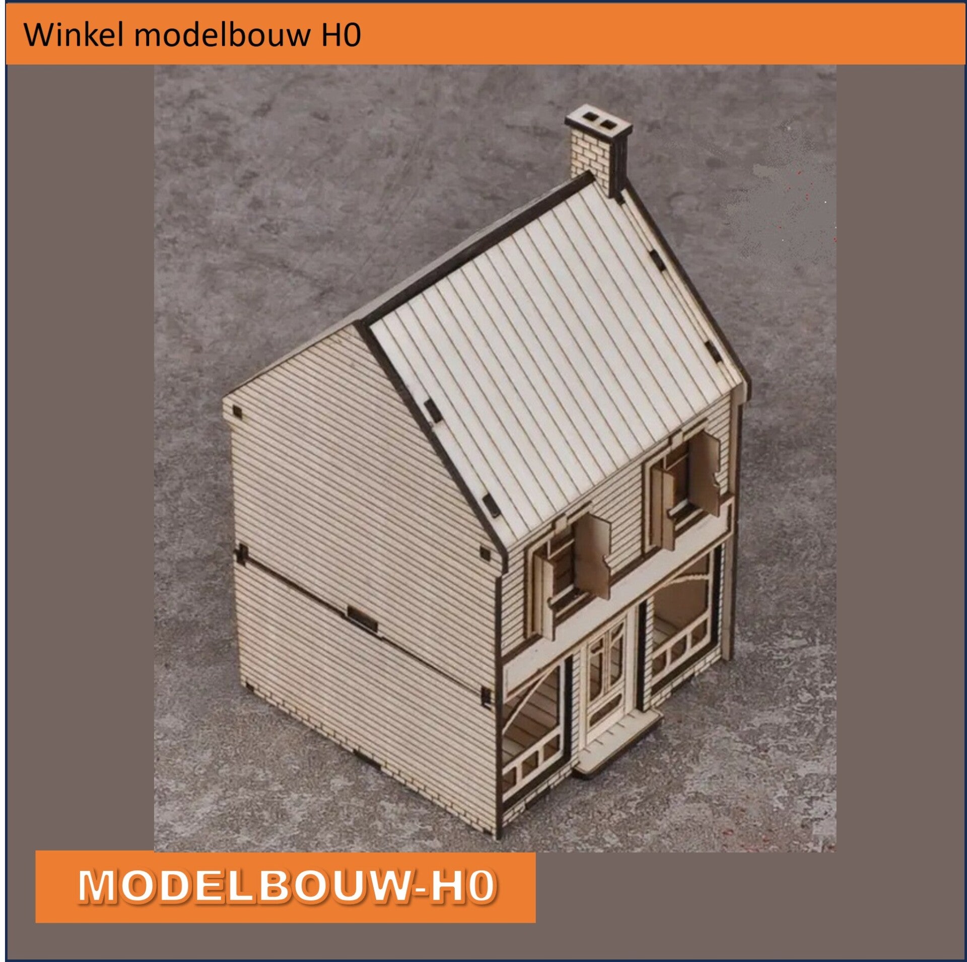 Winkel met woning houten Modelbouw H0 Bouwpakket