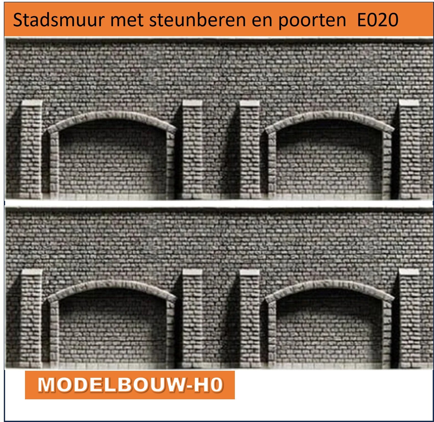 Stadsmuur met poorten en steunberen Reliëf plaat Modelbouw h0 E020