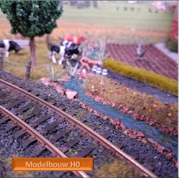 De ondergrond maak je in een gewenste kleur, denk daarbij aan het echte, wat je na wil maken, dus verf dat in de kleur zoals de werkelijkheid is, een sloot bijvoorbeeld is in het midden donkerder dan aan de zijkanten. Nu giet je eerst het transparante gel in de sloot, dat kan in het meegeleverde flesje. Hierna kun je ook riet maar wees voorzichtig met riet want als het valt het, dan is dat lastig weer rechtop te krijgen, stenen een drinkend dier enz toevoegen in de gel. Met de meegeleverde kwast moduleren zoals je dat wil. Daarna volgt een droog periode van 3 uren, helemaal hard is het na 6 uren.