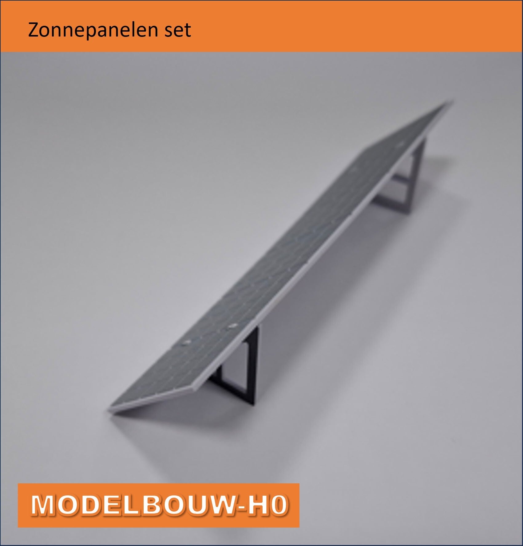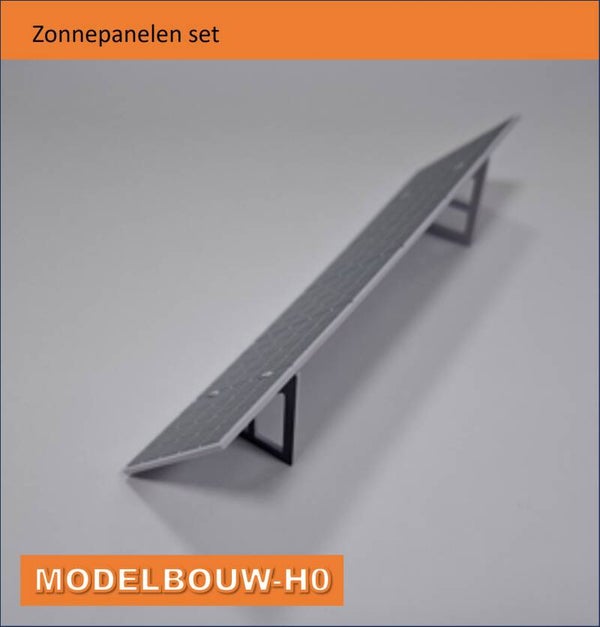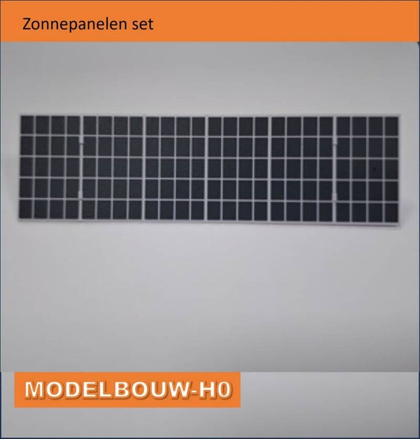 Zonnepanelen set pvc met opdruk 6 zonnepanelen met twee inklikbare standers waardoor deze panelen schuin opgesteld staanformaat 11,5 x 3 cm hoog. pvc wit met opdruk twee inklikbare standers
