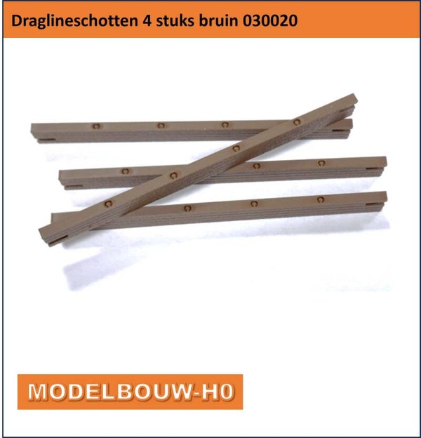 Draglineschot - rijplaten gemaakt van PLA (bioplastic) 3d geprint. Het zijn mooie gekleurde sets, die door de doorgewinterde modelbouw geweatherd gaat worden, met het oog op de realiteit, wordt het een mooie aanwinst op de treinbaan.