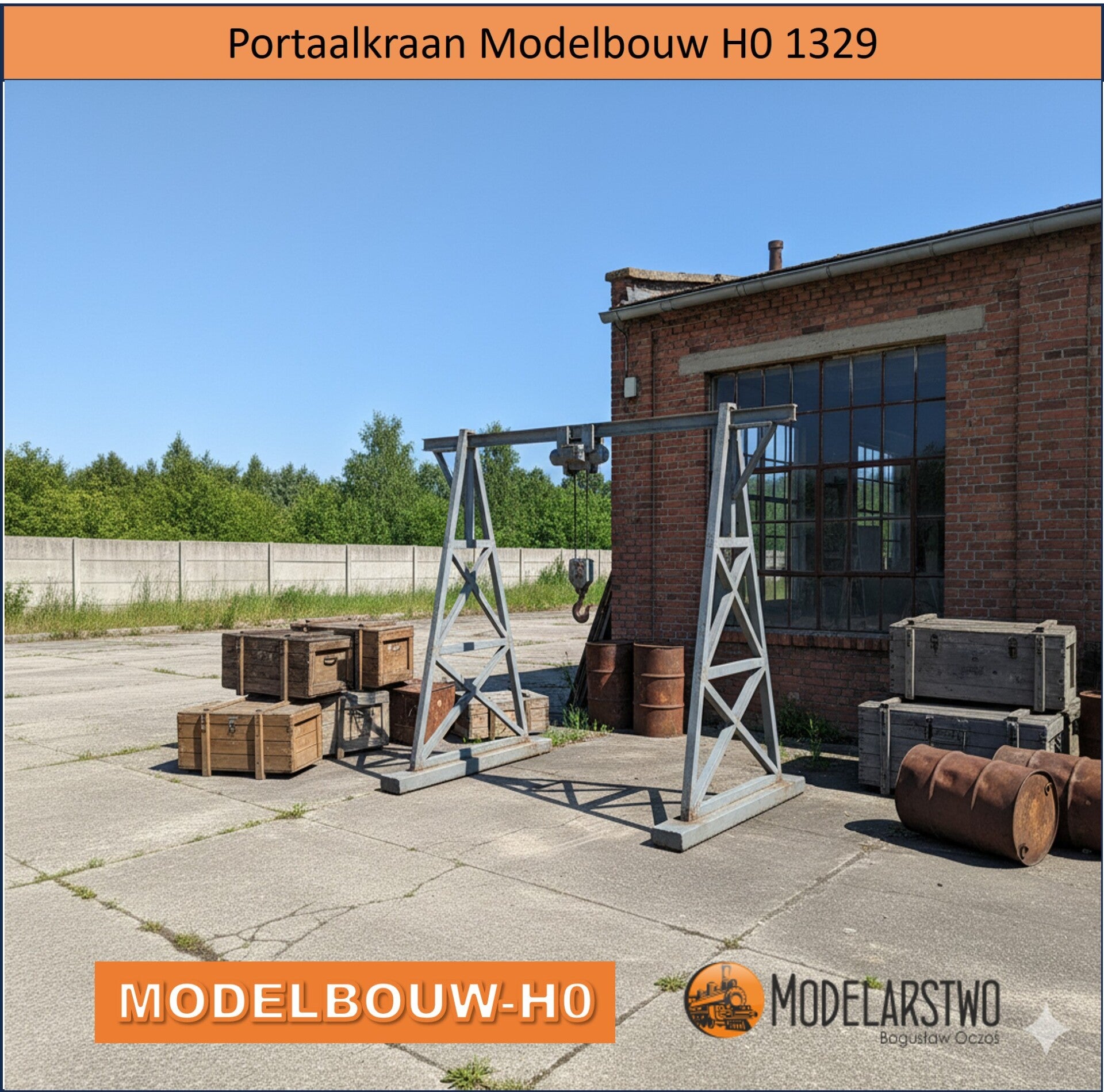 Kleine portaalkraan, voor Modelbouw H0, die voor de proffesionele modelbouw zeker nog een eigen inbreng geeft. het is een bouwpakketje van hars, karton, ABS en messing.